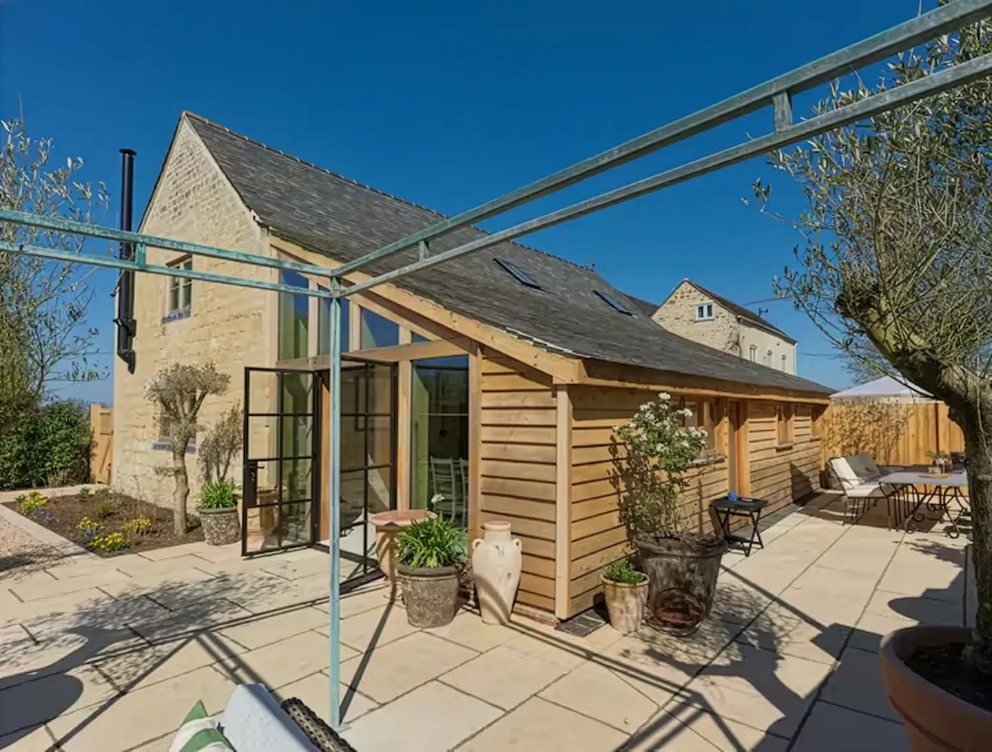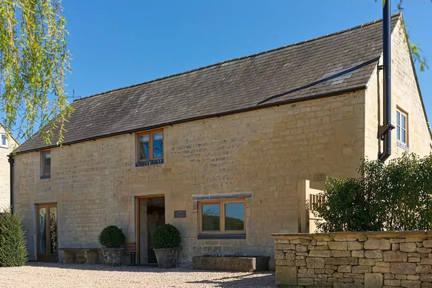Nestled in the picturesque village of Bentham, Gloucestershire (GL51 4TZ), this charming barn is enveloped by the tranquil beauty of the Cotswold hills and