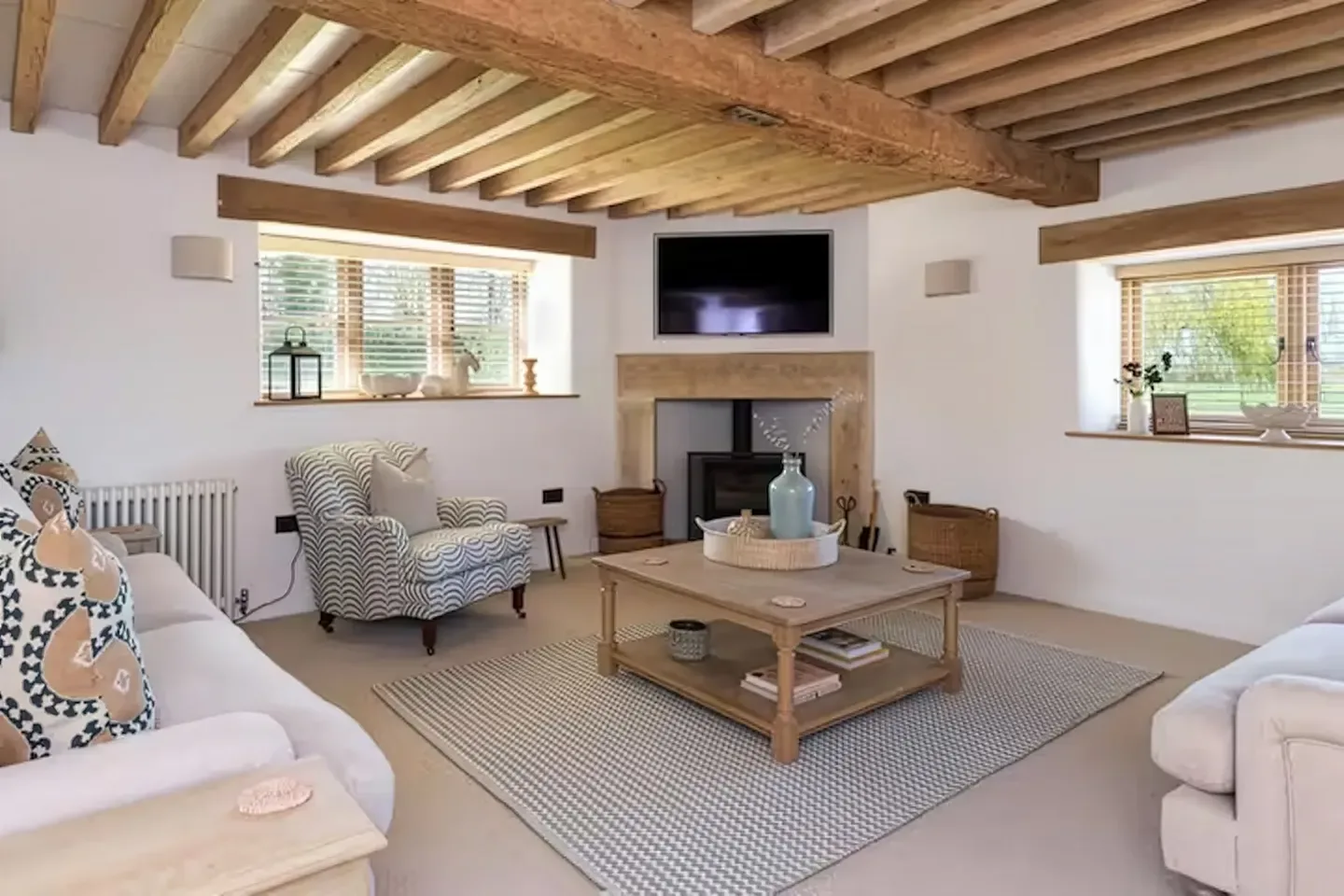 peaceful countryside surroundings, our beautifully restored 17th-century barn offers a warm and inviting holiday escape for families, friends, or groups of up to 8 guests. Bursting with original features, this historic barn combines rustic character with thoughtful design. Exposed beams and stone walls tell its story, while stylish