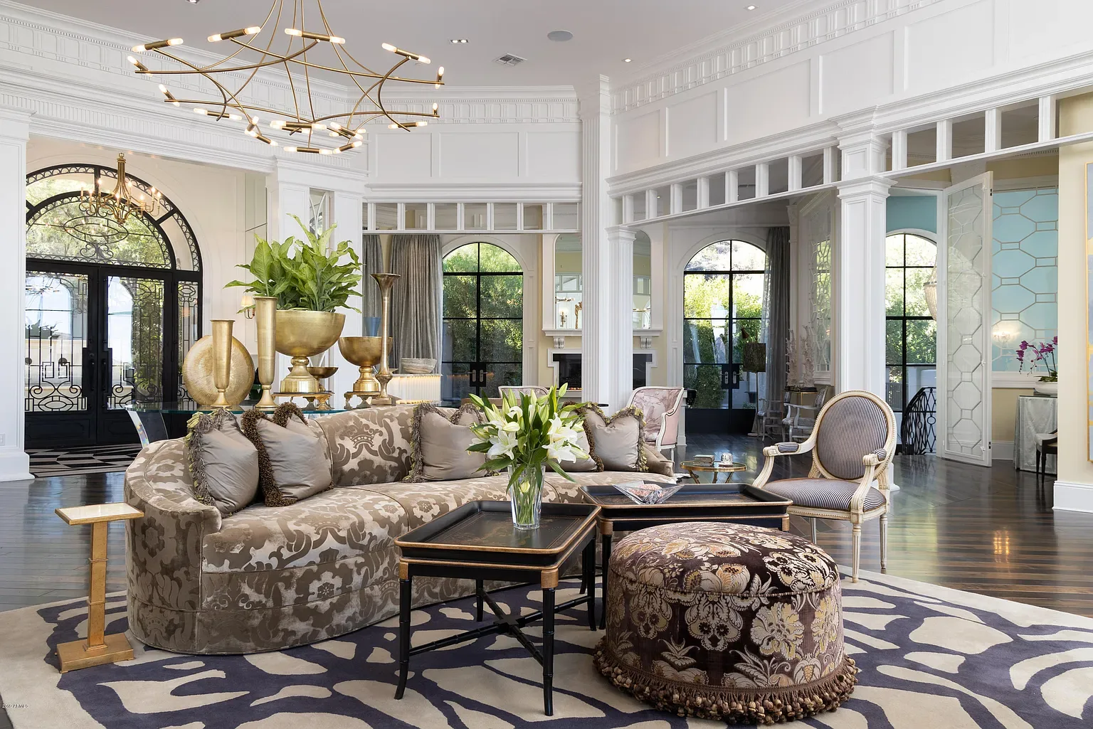 This remarkable 20,000 square foot property includes 7 ensuite bedrooms, 13 bathrooms, 4 fireplaces, 4 separate laundry facilities, 3 full bars, a private office, media room, game room and giant entertaining space. Nationally recognized interior designer, Jamie Herzlinger, completed this home with state of the art furnishings and design elements hearkening back to the time of the Golden Era.